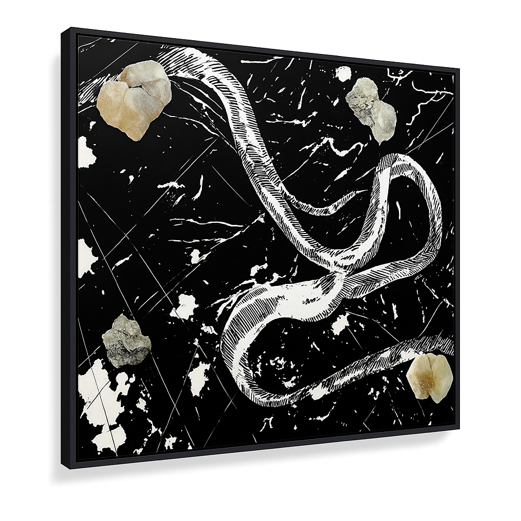 Each piece is hand-finished with acrylic highlights, then gallery-wrapped over a sleek black pine wood frame. Designed for indoor use only.