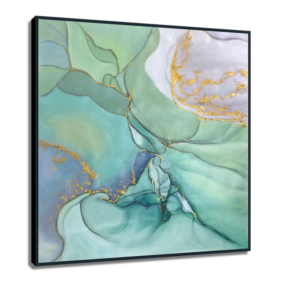 Emerald Fusion captures a mesmerizing interplay of jade, forest, and luminous chartreuse in sweeping, gestural brushwork. The premium cotton canvas faithfully renders each expressive mark, while hand-applied acrylic layers create compelling surface texture and dimensional richness. Mounted in a refined black frame wrap, this composition draws the eye inward and establishes a contemplative, contemporary presence in any space.